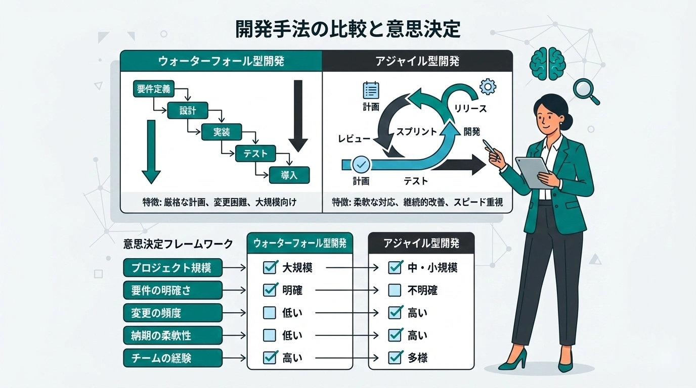 開発手法の選択は、プロジェクトの成否を左右する重要な決定です。