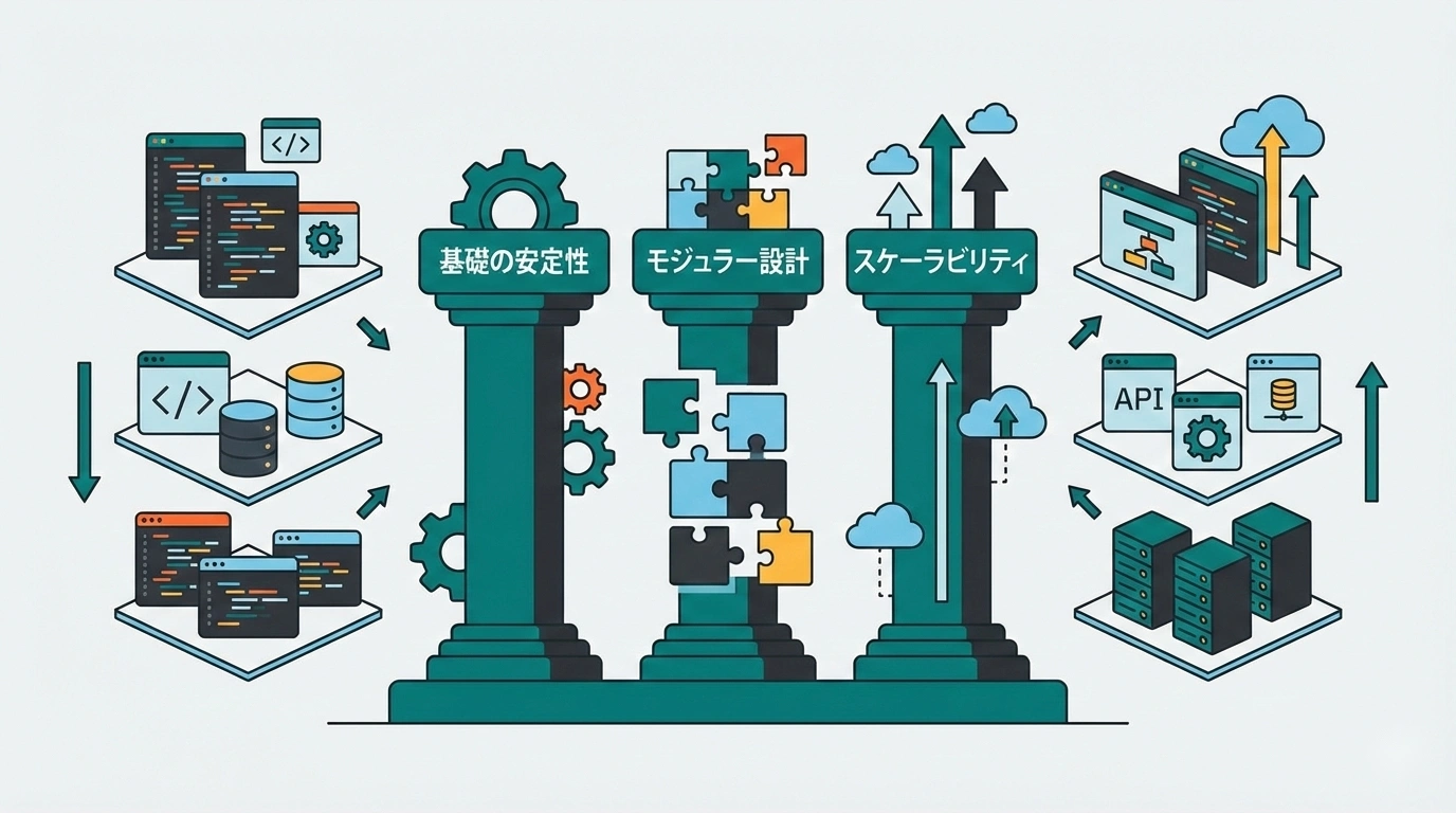 - 拡張性:将来の成長に対応できる設計を(ただし過度にならない)