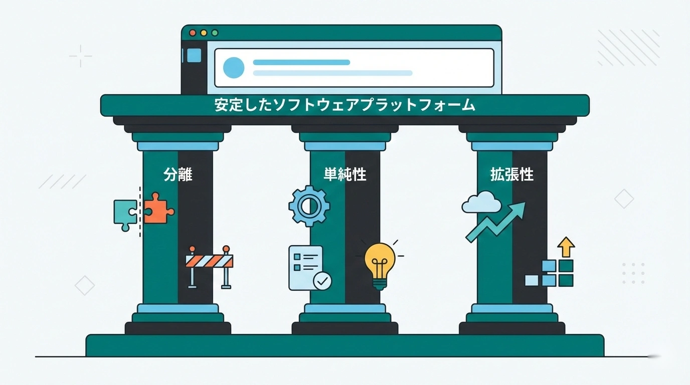 - 堅牢なコードベースの3つの柱:分離・シンプル・拡張性
