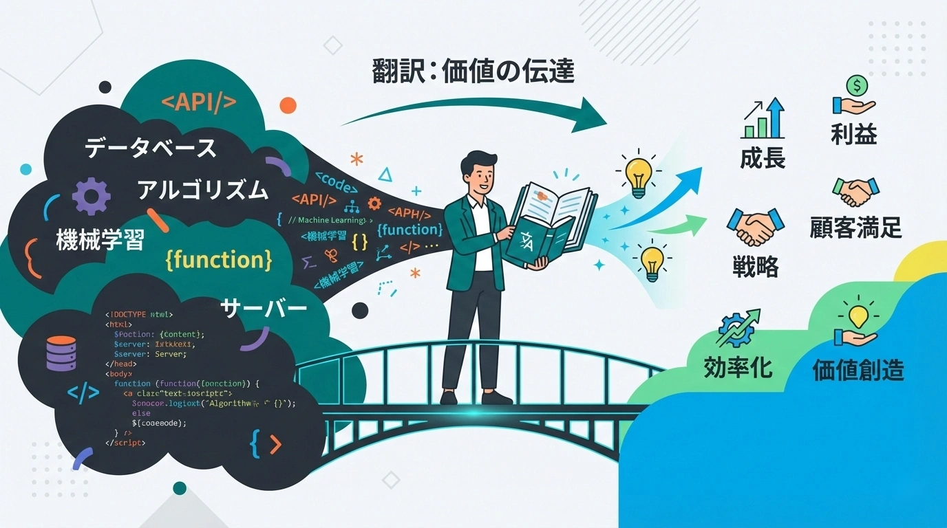 技術とビジネスの**「翻訳者」**として、あなたとエンジニアの橋渡しをお手伝いします。