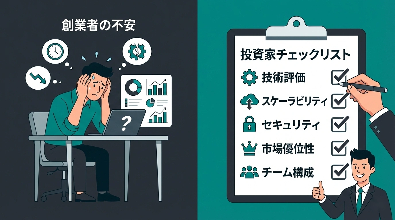 投資家が本当に気にしているのは、**「このチームは技術的なリスクを管理できるか?」**という点です。