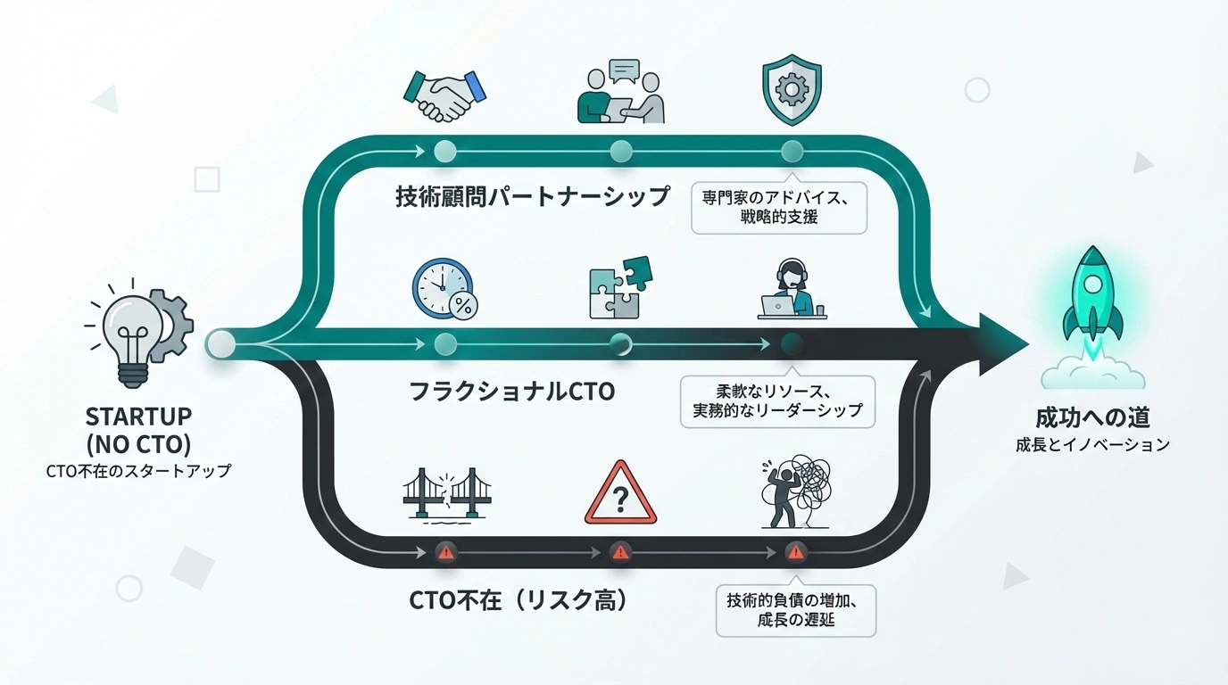 そんなことはありません。実際に、CTO不在でも投資を獲得したスタートアップは存在します。彼らに共通するのは、**「CTO不在のリスクを軽減する仕組み」**を持っていることです。