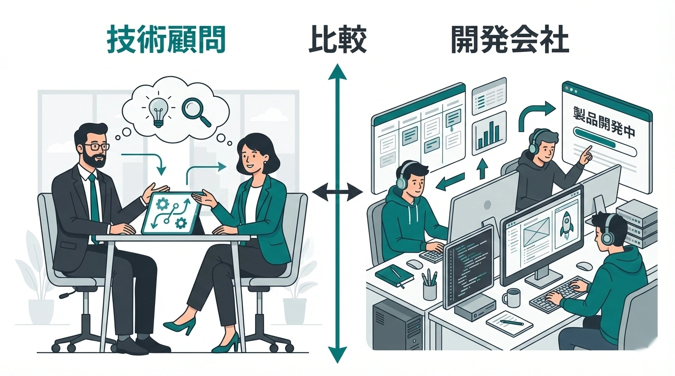 「技術顧問」と「開発会社」の違い。あなたのフェーズに必要なのはどっち?
