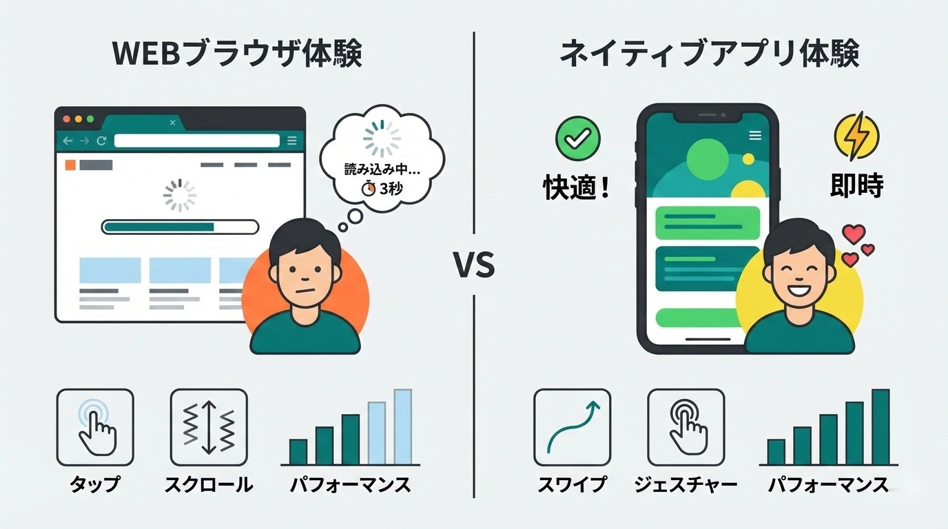 この記事では、初期ステージでWebアプリとネイティブアプリのどちらを選ぶべきか、明確な判断基準を解説します。
